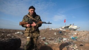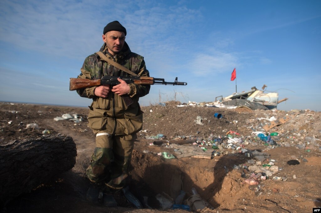 A pro-Russian separatist near the Ukrainian village of Frunze in Luhansk Oblast