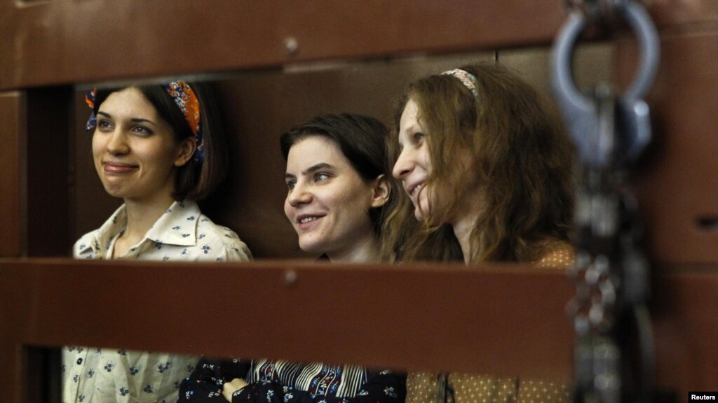 Nadezhda Tolokonnikova, Maria Alyokhina, and Yekaterina Samutsevich were charged with hooliganism and insulting feelings of Orthodox Christians after staging a performance at Moscow's Christ the Savior Cathedral in March against President Vladimir Putin’s rule.