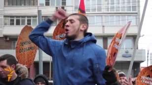 MOSCOW -- Dozens of young activist belonging to an anti-Maidan movement in Russia have protested in front of RFE/RL's offices in Moscow.
