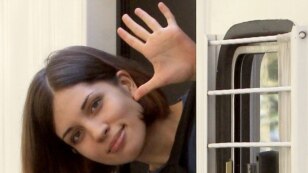 Nadezhda Tolokonnikova, a member of the feminist punk group Pussy Riot, waves from a police van after a court hearing in Moscow on August 8.
