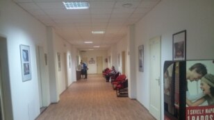 During a midday visit by RFE/RL two days after the show's opening, the hall was empty aside from two elderly members of the communist-linked "Czech Borderlands Club" lounging in armchairs lining the walls.