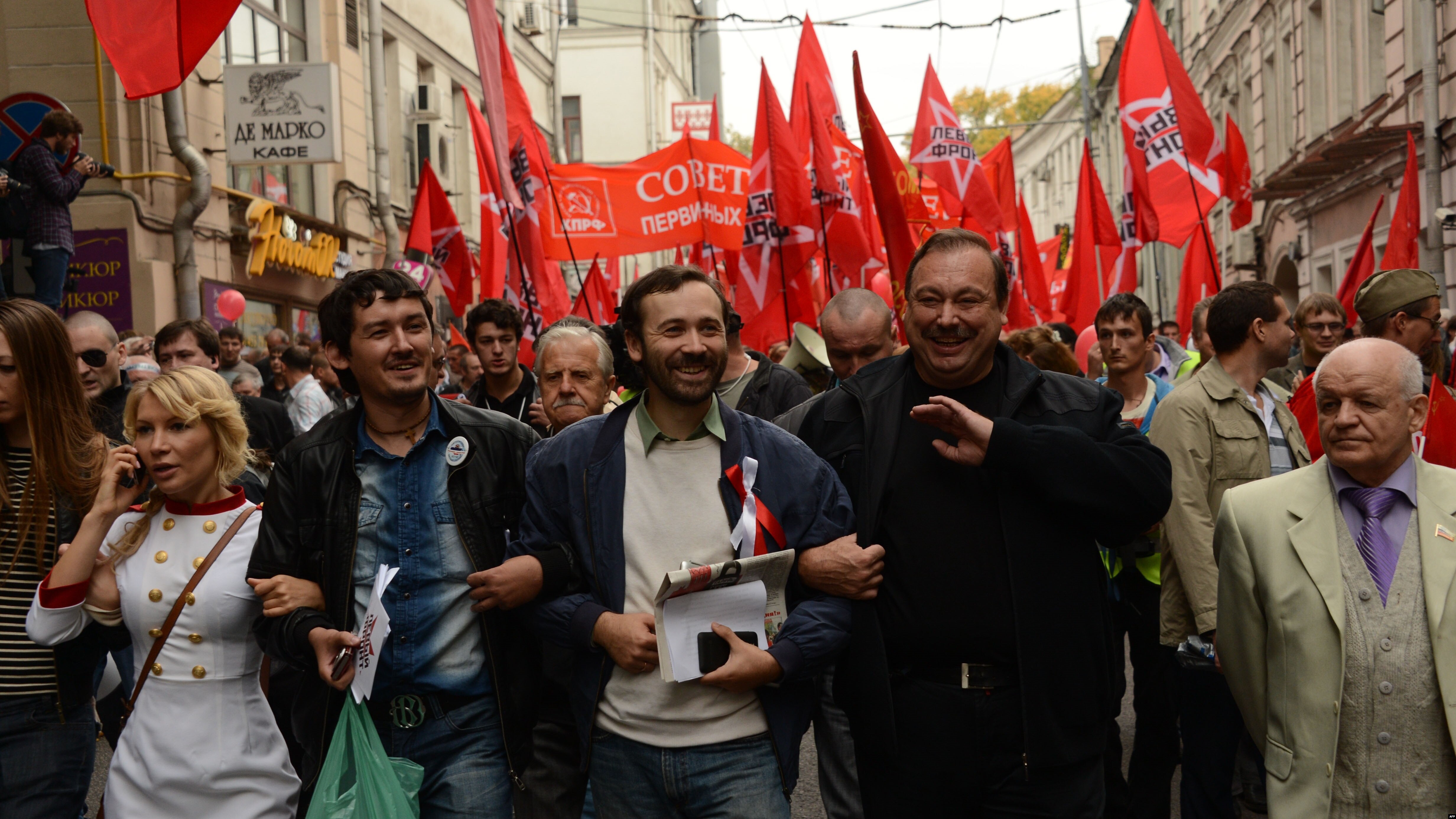 The demonstrations, the first major antigovernment protest in three months, came one day after Russia's parliament expelled opposition politician Gennady Gudkov from its ranks and stripped him of immunity from criminal prosecution. Gudkov was among the marchers in Moscow.