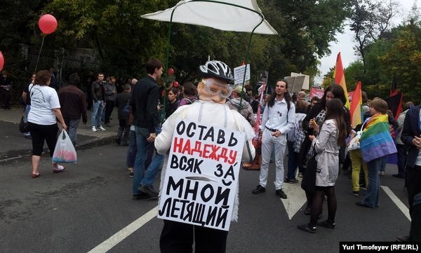 The September 15 marches were also the first mass opposition actions since the sentencing of three members of punk band Pussy Riot in mid-August to two years in prison for an anti-Putin protest in an Orthodox cathedral.