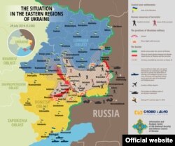 The map for July 28 of the military situation in eastern Ukraine, according to the National Security and Defense Council: