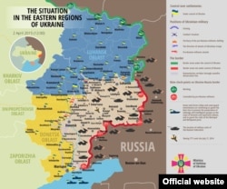Here is today's map of the security situation in eastern Ukraine, according to the National Security and Defense Council (CLICK TO ENLARGE):
