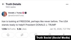 “Iran is looking at FREEDOM, perhaps like never before. The USA stands ready to help!!!” he wrote on his Truth Social account on January 2.
