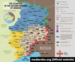 Here is today's map of the security situation in eastern Ukraine, according to the National Security and Defense Council (click to enlarge):